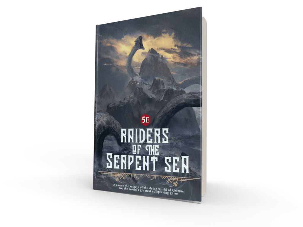 Raiders of the Serpent Sea is a blend of high fantasy and a darker world of grim seafaring raiders. The world of Grimnir is an unstable and primal realm strongly influenced by Norse mythology and the histories of the Vikings. The raiders of Grimnir fight to survive in this doomed world filled with ancient and fantastic creatures – giants, sea serpents, saber-toothed tigers, and the world-devouring Yoten. Nowhere is safe: danger and glory abound!